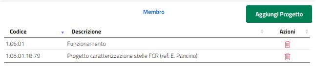 All’interno del vostro portale troverete già inseriti alcuni progetti di cui risultate PI nazionale. Questi progetti non possono essere rimossi. Il dato sulla PIship nazionale proviene direttamene dal programma di contabilità e non può quindi essere aggiunto manualmente.